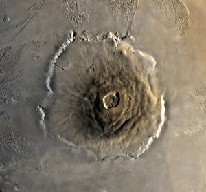 火星には太陽系最大級の火山であるオリンポス山があります。現在は火山活動は確認されていませんが、少なくとも数千万年前頃までは活動していたとみられています。オリンポス山の裾野の直径は約600km、高さは富士山の7倍近い27kmです。また、火星の赤道付近には、これまた太陽系最大級の渓谷、マリネリス峡谷があります。全長が約2,000kmにも及ぶ長大なもので、深いところでは10kmもの深さがあります。