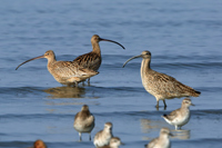 河口の干潟を利用している渡り鳥の中には砂地に生息している小さなムシ類、エビ類、カニ類を食べている。