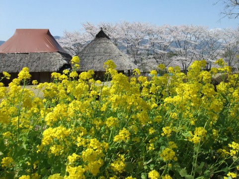 道をはさんで畠(はた)一面に 麦はほが出る菜は花盛り 眠る蝶々とび立つひばり 吹くや春風たもとも軽く あちらこちらに桑つむおとめ 日まし日ましにはるごも太る